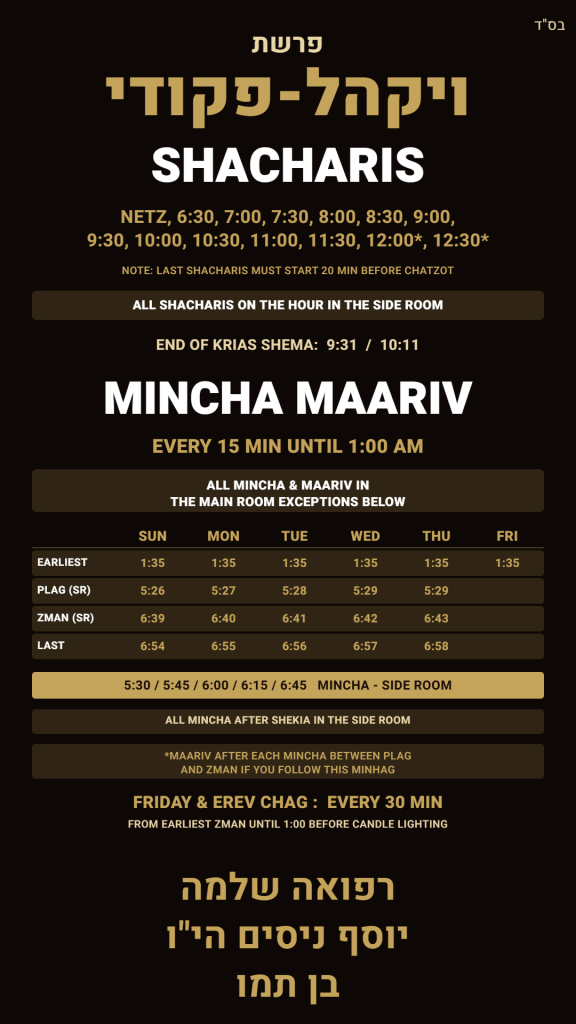 ZMANIM OF THE WEEK