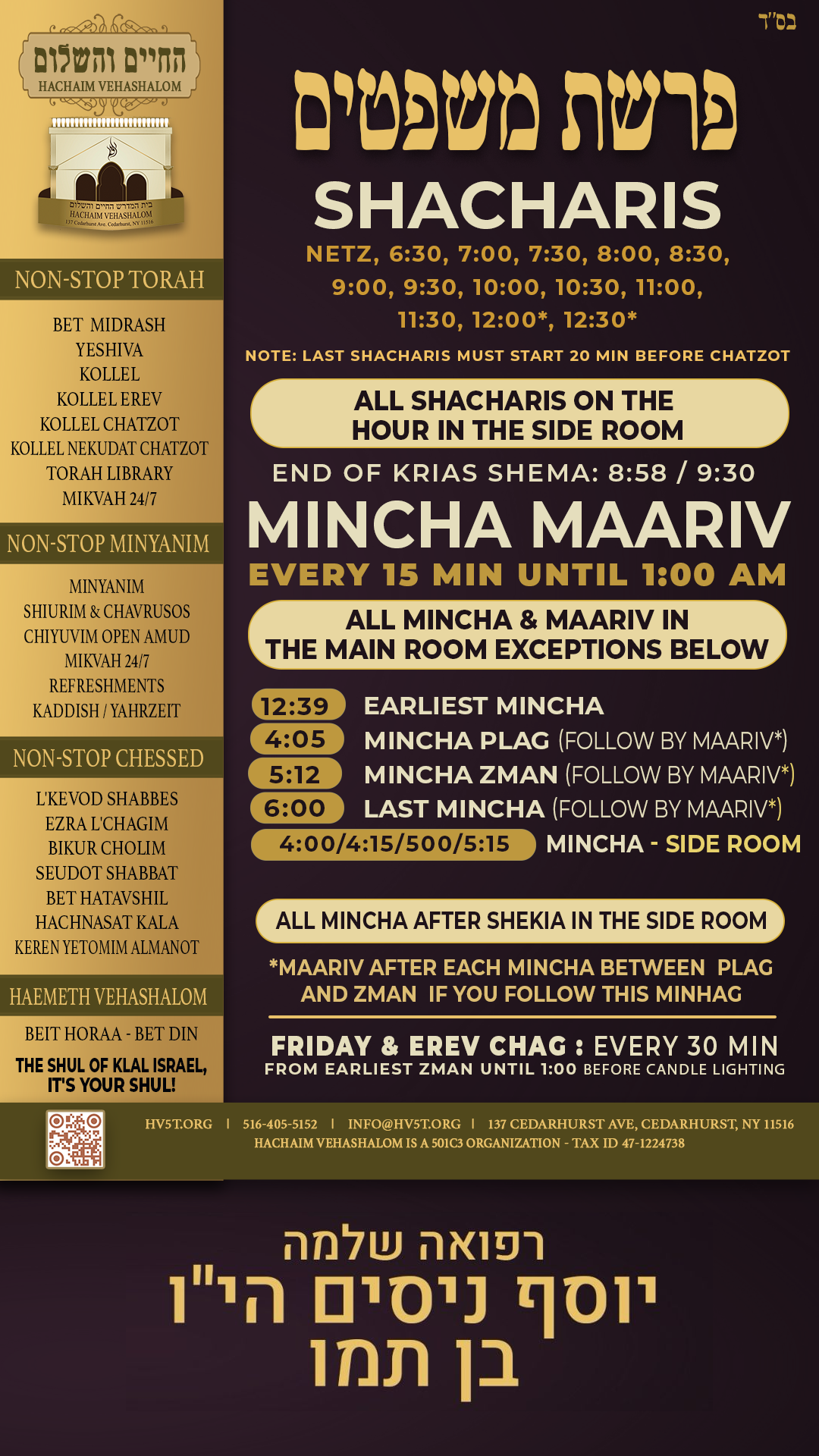 – the place where prayers are heard, Torah is studied, and souls are elevated. Through Ner Lamaor, you partner in sustaining our sacred space and all its essential operations: