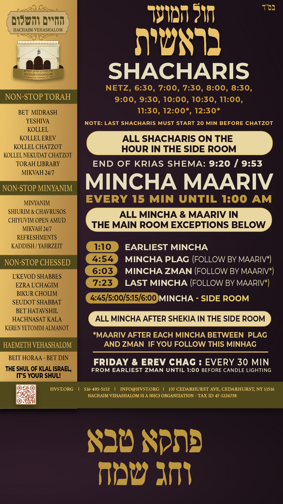BE PART OF EVERY PRAYER AT non-stop minyanim